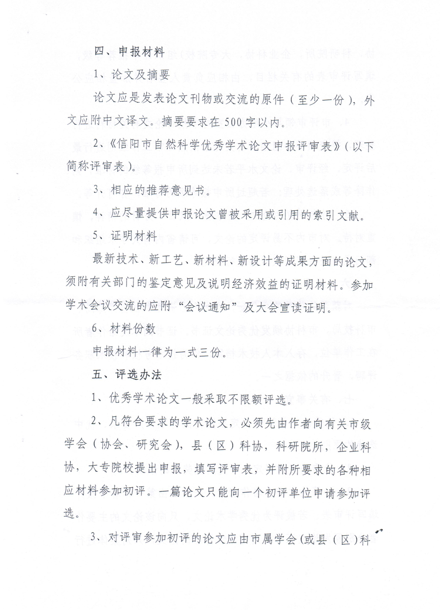 关于开展信阳市第八届自然科学优秀学术论文评选活动的通知